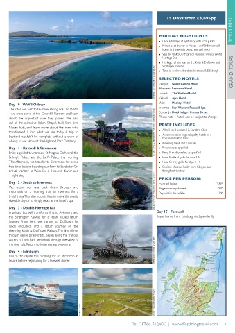 free time, before boarding our ferry to Scrabster. On ● Services of a tour leader from Glasgow and