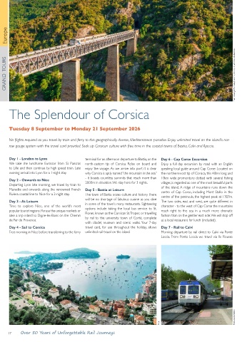 Day 4 - Sail to Corsica travel card, for use throughout the holiday, allows Day 7 - Rail to Calvi