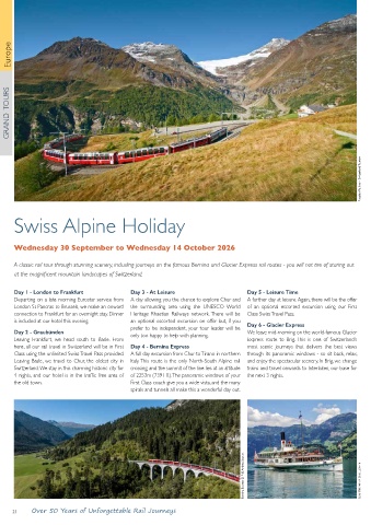 Departing on a late morning Eurostar service from A day allowing you the chance to explore Chur and A further day at leisure. Again, there will be the offer
