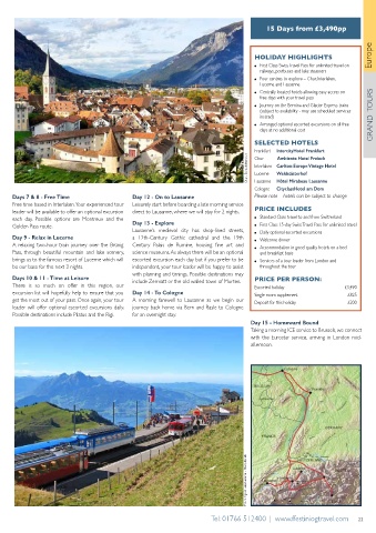 leader will be available to offer an optional excursion direct to Lausanne, where we will stay for 2 nights. PRICE INCLUDES
