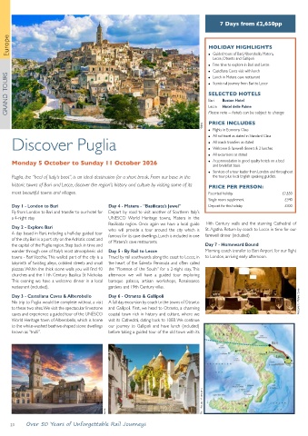 wander through one of Italy’s most atmospheric old Day 5 - By Rail to Lecce Morning coach transfer to Bari Airport for our flight