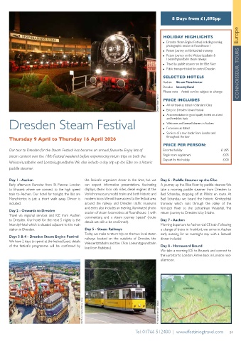 Our tour to Dresden for the Steam Festival has become an annual favourite. Enjoy lots of Escorted holiday £1,895
