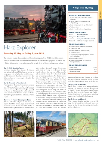 Our escorted tours to the world famous Harzer Schmalspurbahnen (HSB) never fail to attract ● Evening meal on first night