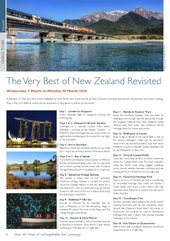 A fabulous 27-day tour that covers highlights of both North and South Islands of New Zealand including spectacular rail journeys and scenic sailings.