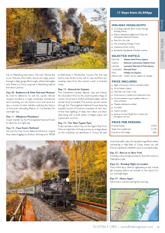 ● Spectacular Appalachian Mountain scenery GRAND TOURS
