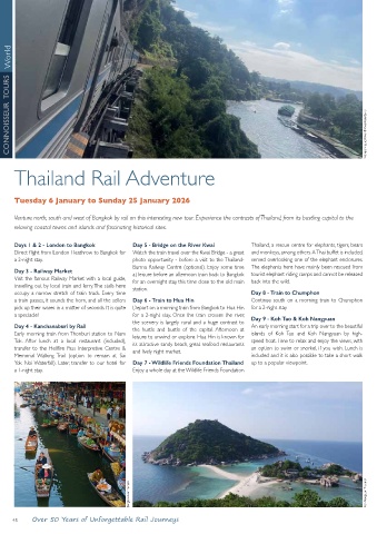 Day 3 - Railway Market at leisure before an afternoon train back to Bangkok tourist elephant riding camps and cannot be released