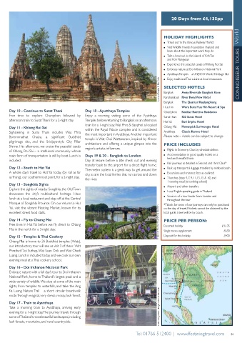 main form of transportation is still by boat. Lunch is Days 19 & 20 - Bangkok to London ● Accommodation in good quality hotels on a