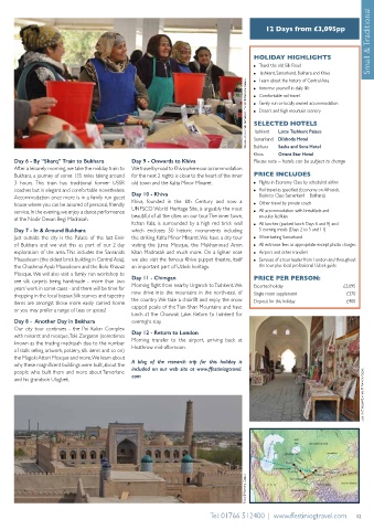 shopping in the local bazaar. Silk scarves and tapestry now drive into the mountains in the north-east of Single room supplement £370