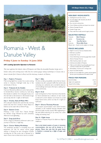 Day 1 - Flight to Timisoara Day 7 - Sibiu Escorted holiday £3,110