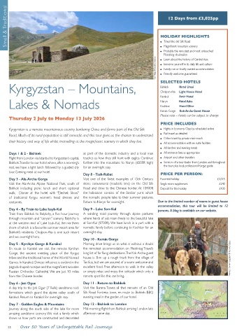 Day 4 - By Train to Lake Issyk-Kul Day 9 - Lake Son-Kul persons. A blog is available on our website.